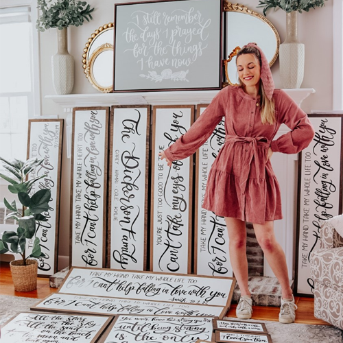 “I am the owner and designer behind the hand-lettering business Details and Swirls. I create custom hand-lettered pieces for weddings and home décor. Alongside hand lettered designs, I also provide small business guidance through my weekly podcast, “The Detailed Diary Podcast,” as well as small business mentorship and courses.”